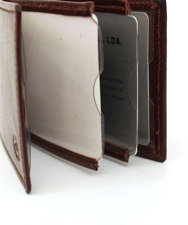 F. Antunes card holder with 4 transparent plastic sleeves , in leather. Brown color.